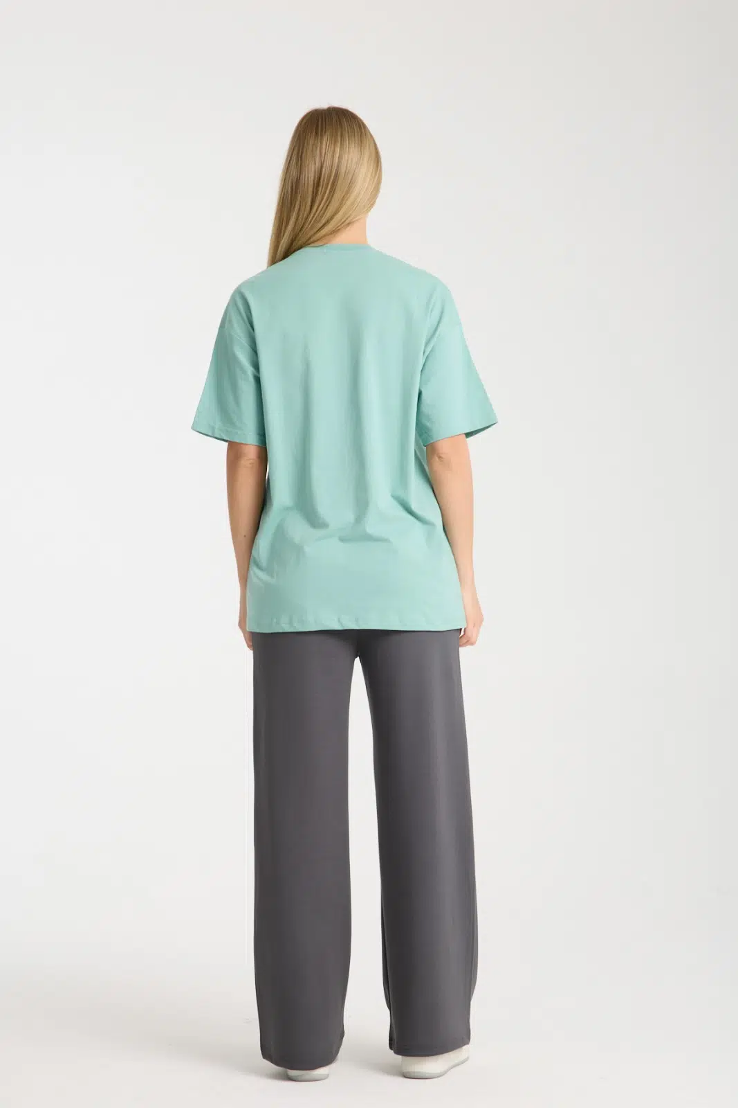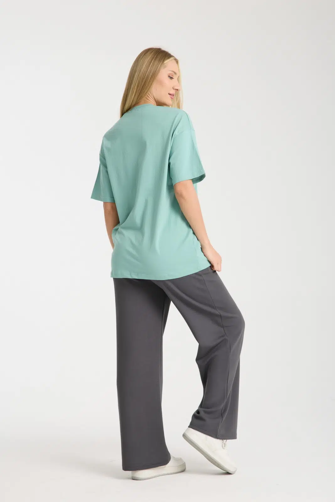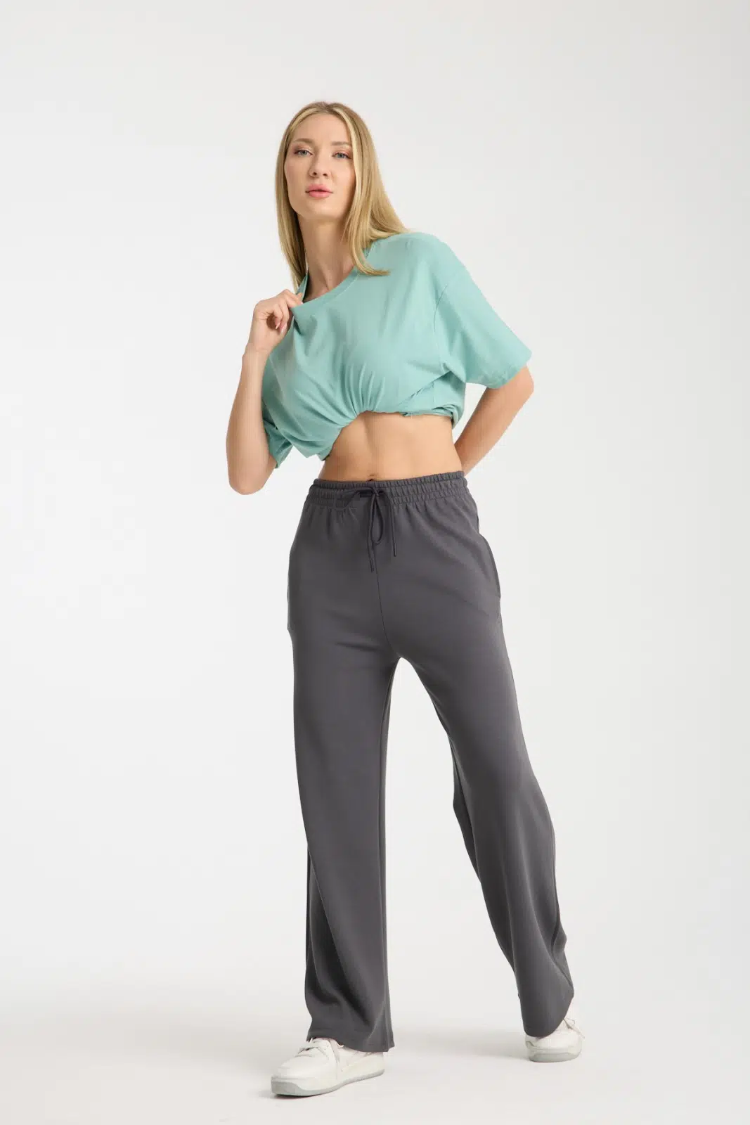 Geniş paça kesimiyle rahat bir duruş ve şık bir görünüm sunar.