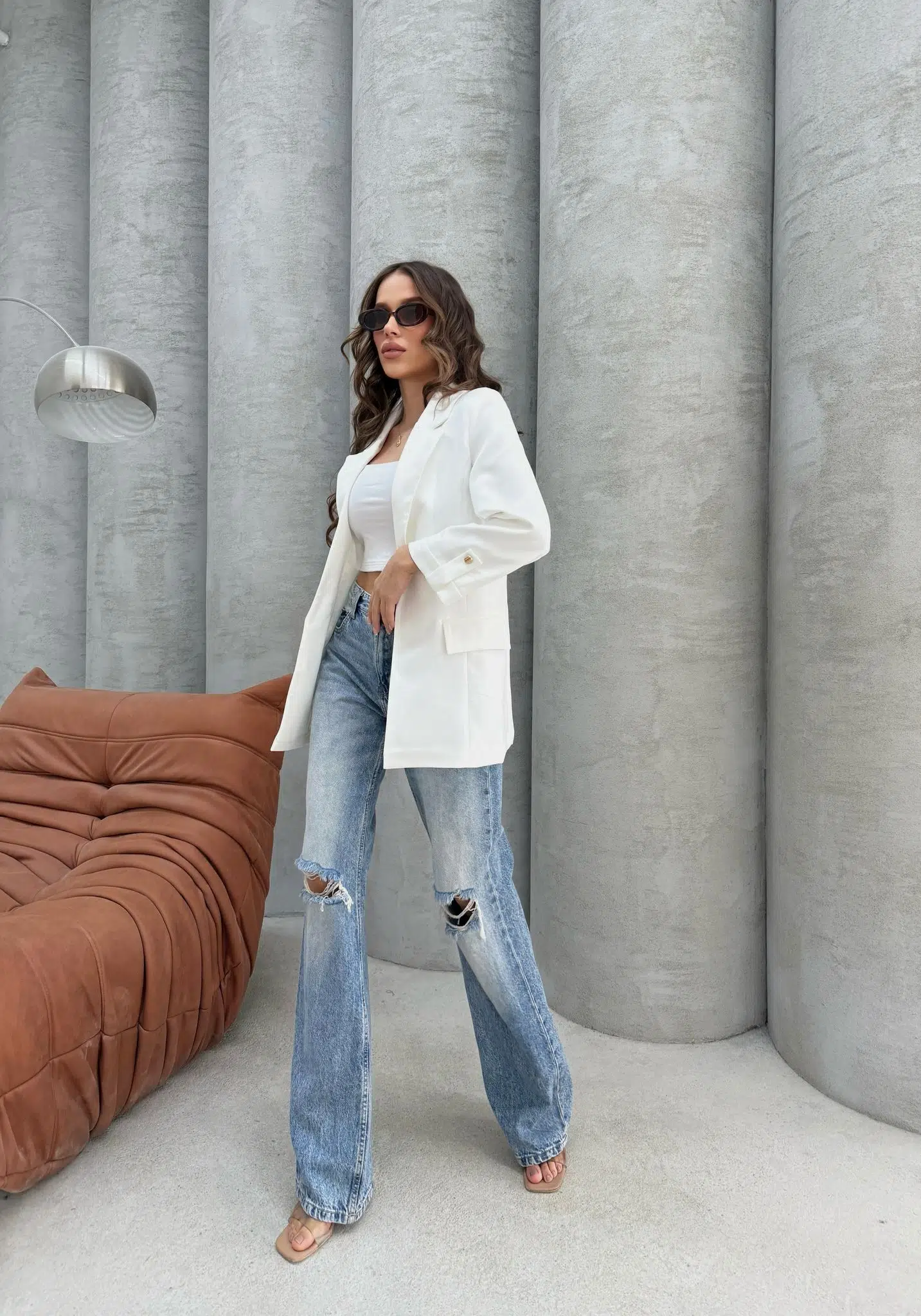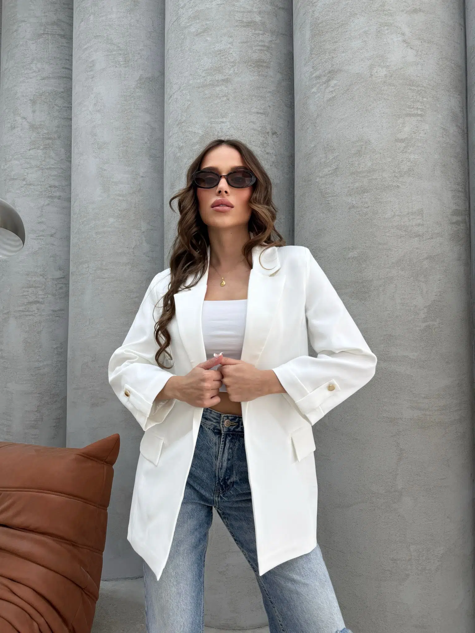 Düz kesimiyle modern ve zamansız bir stil sunar.
