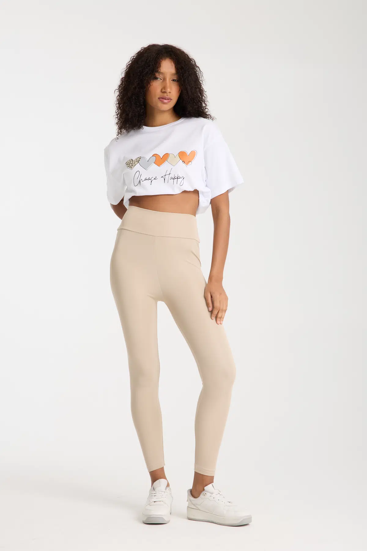 Beyaz Choose Happy Yazılı T-shirt