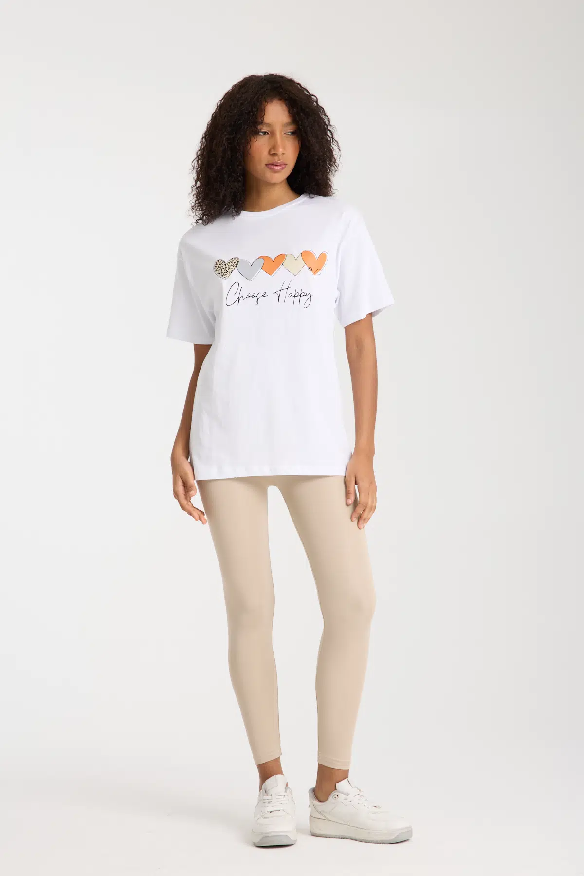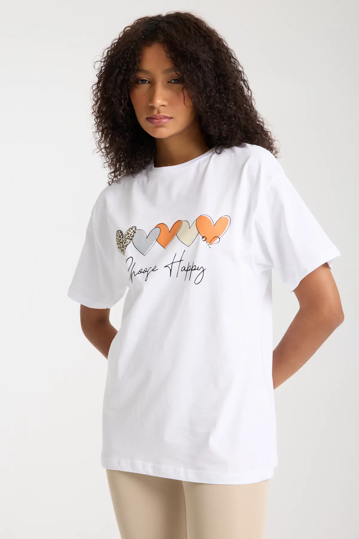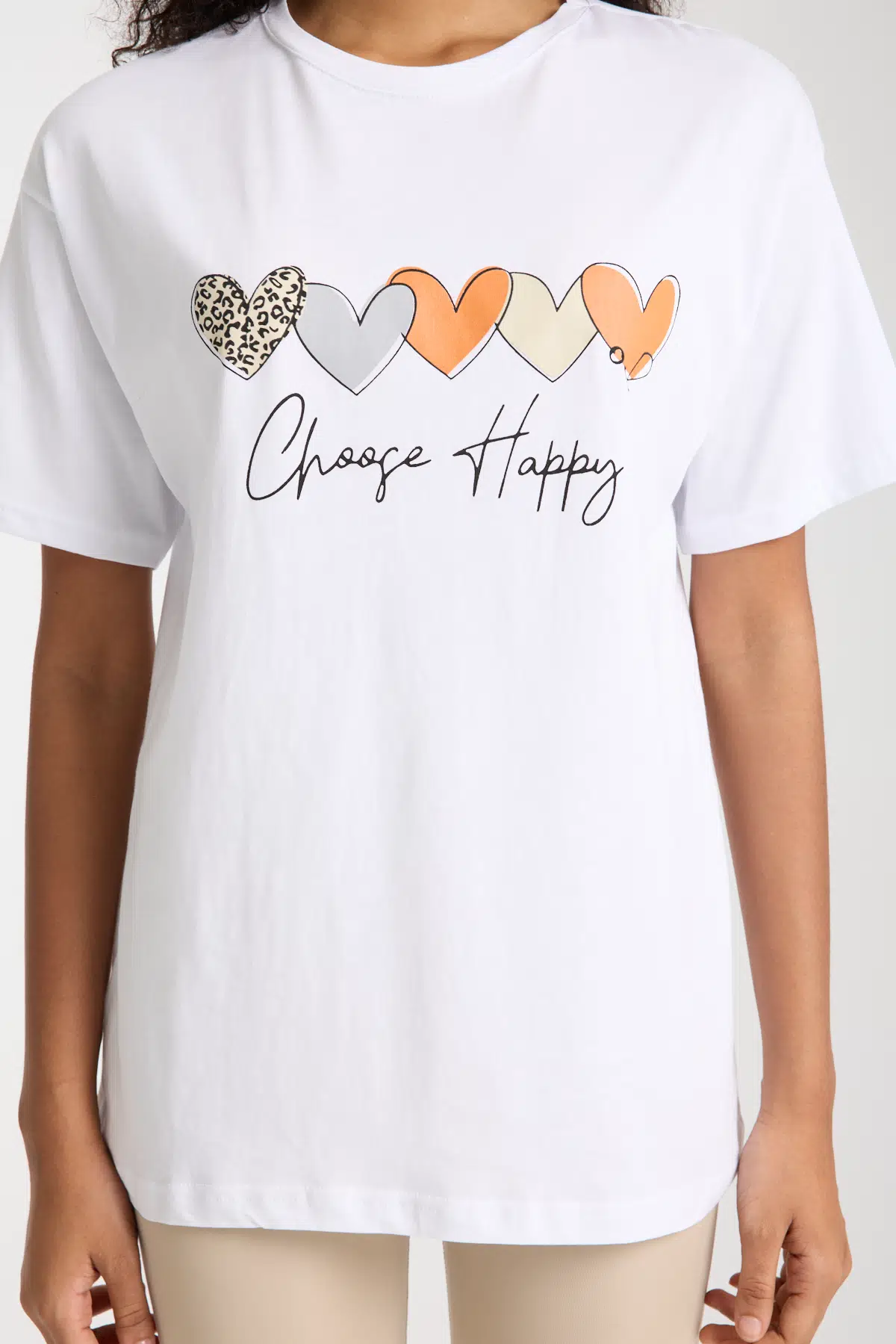 Beyaz Choose Happy Yazılı T-shirt