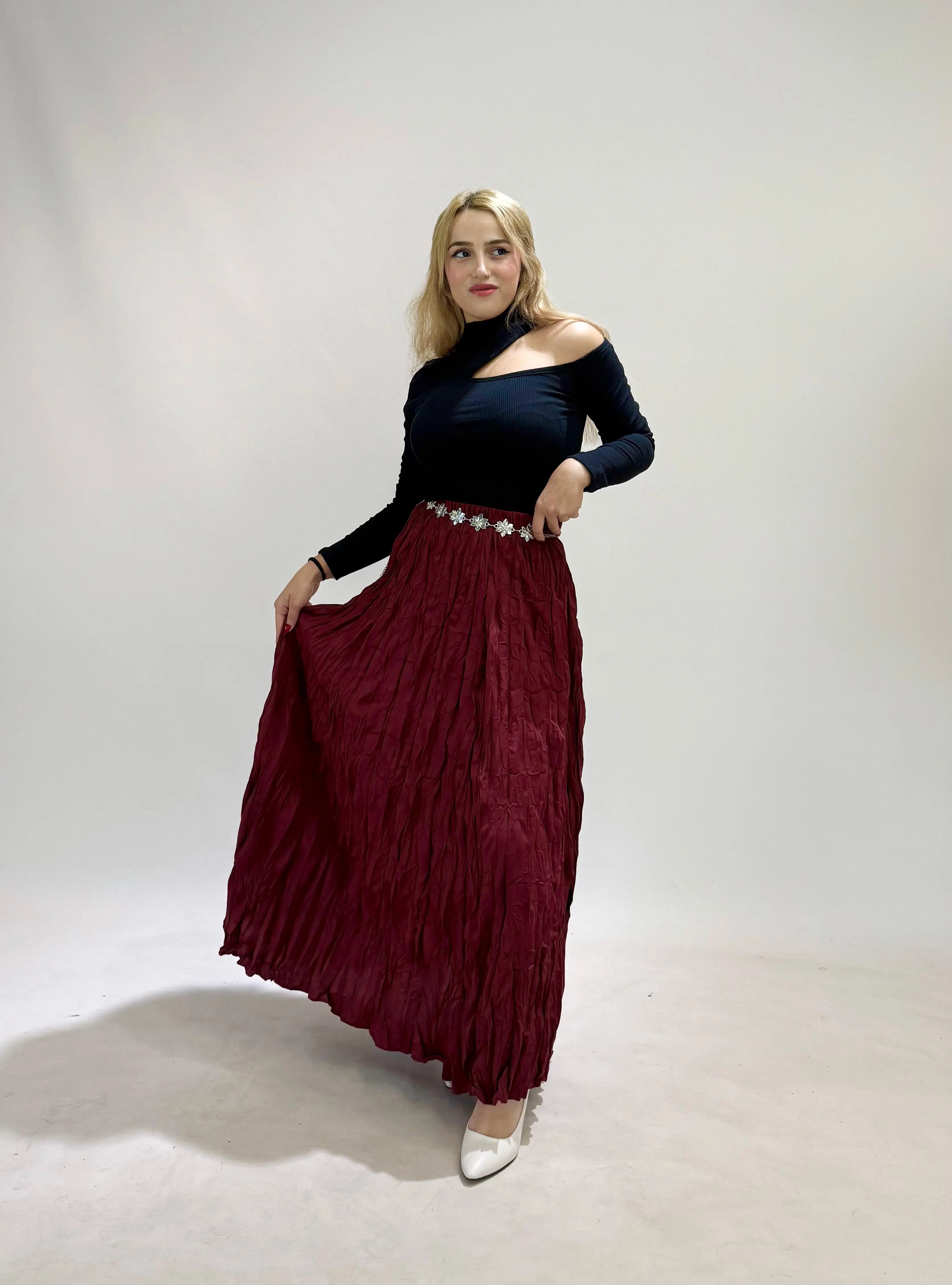 Akıcı kumaşı ve dökümlü yapısıyla her adımda zarafet hissi uyandırır.