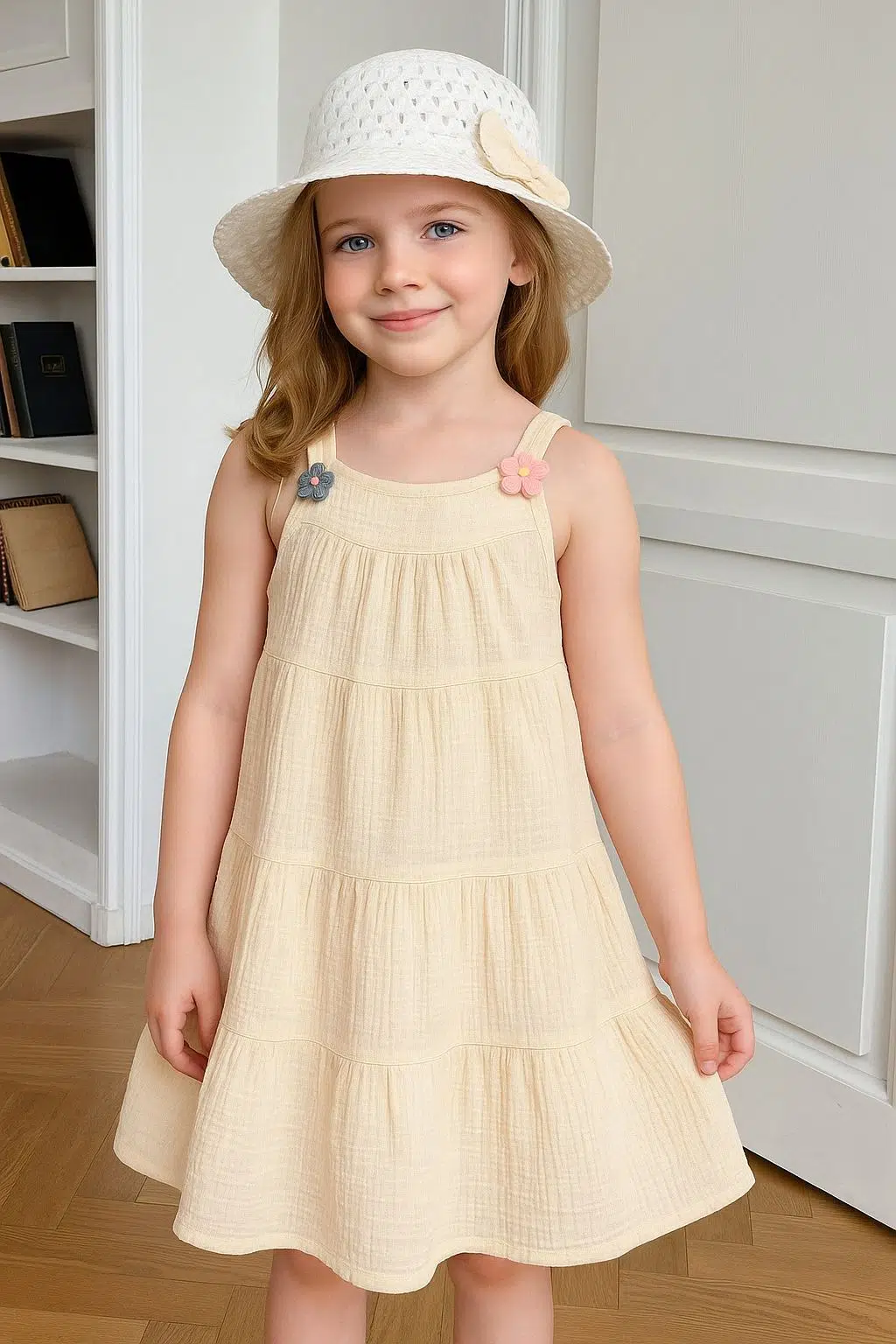Şapka Takımlı Flora Elbise (Müslim Kumaş)