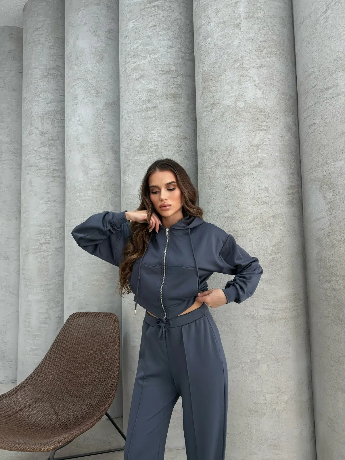 • Üst kısmı fermuarlı ve kapüşon detaylı, alt kısmı ise bağcıklı ve bol paçalı kesime sahiptir.