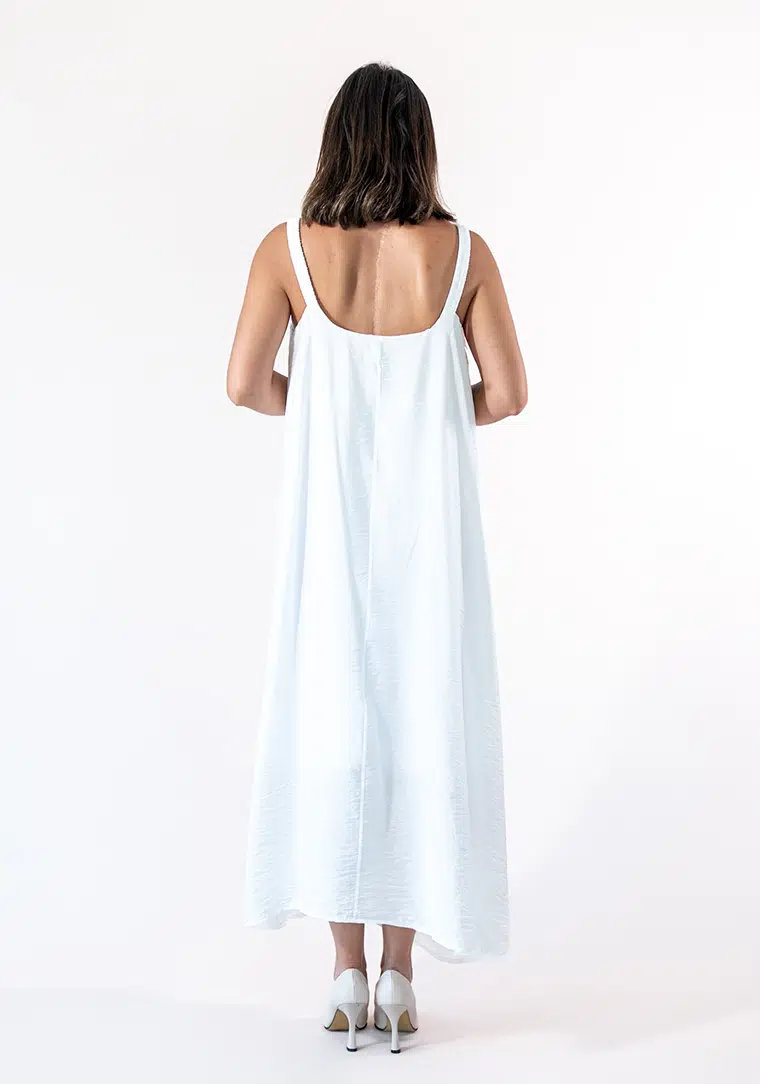Kadın Beyaz Askılı Bol Bodrum Elbise