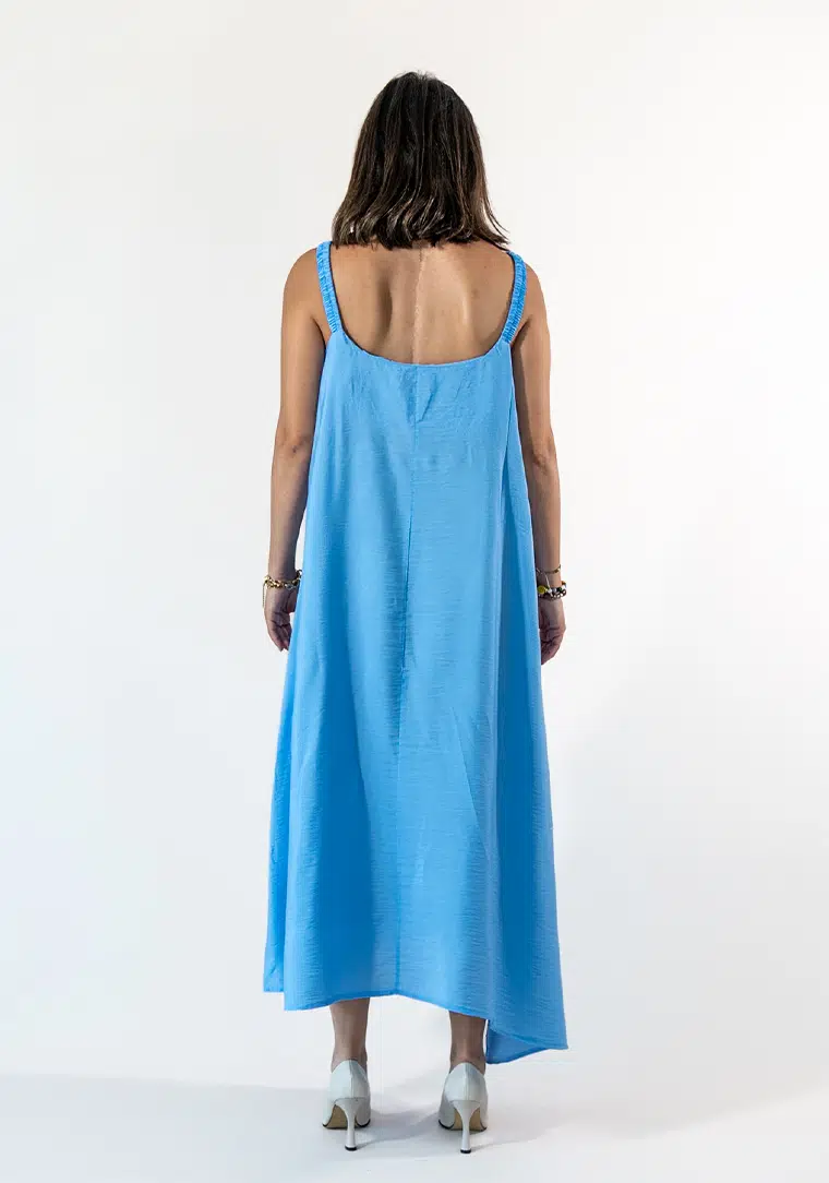 Kadın Mavi Askılı Bol Bodrum Elbise