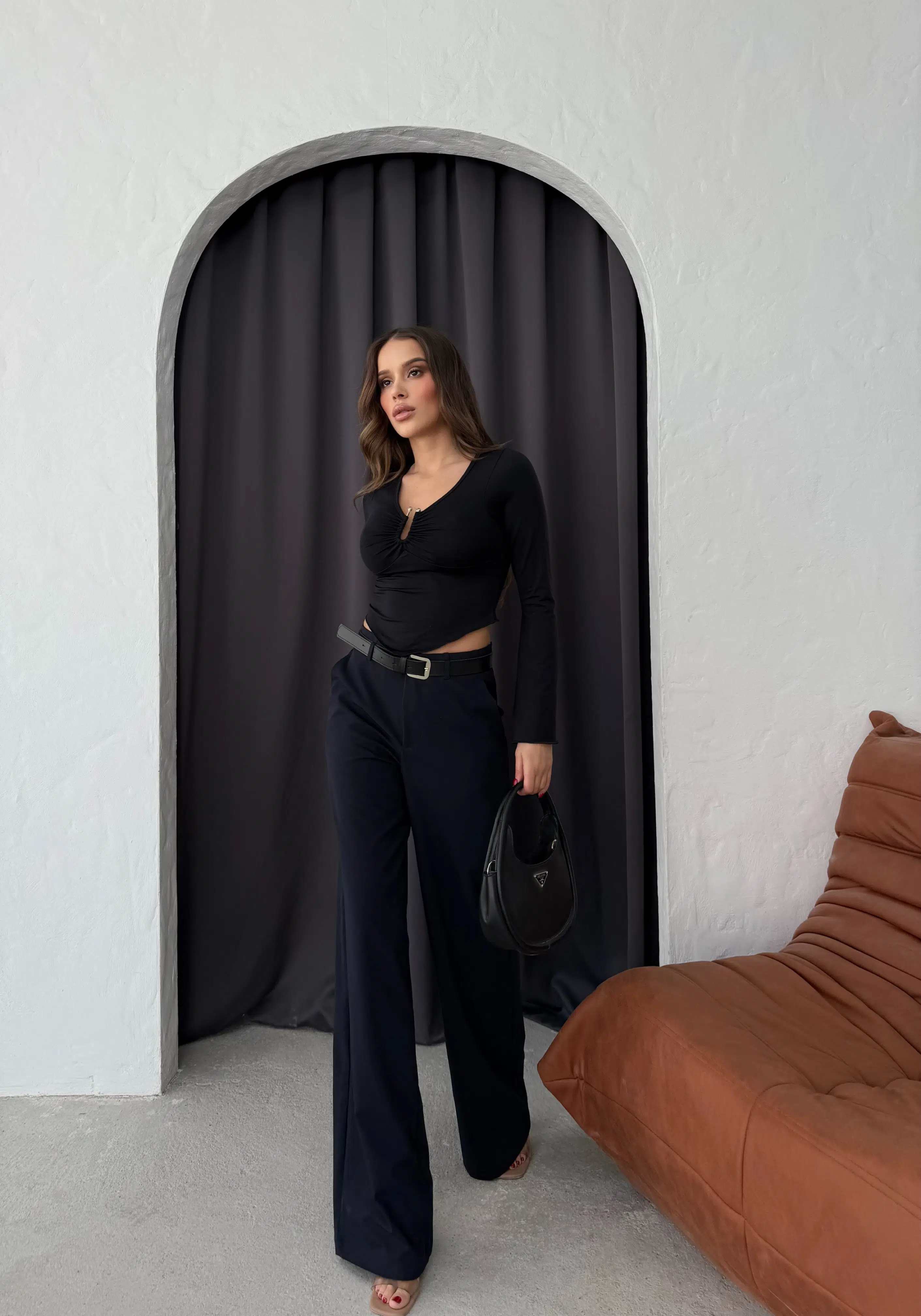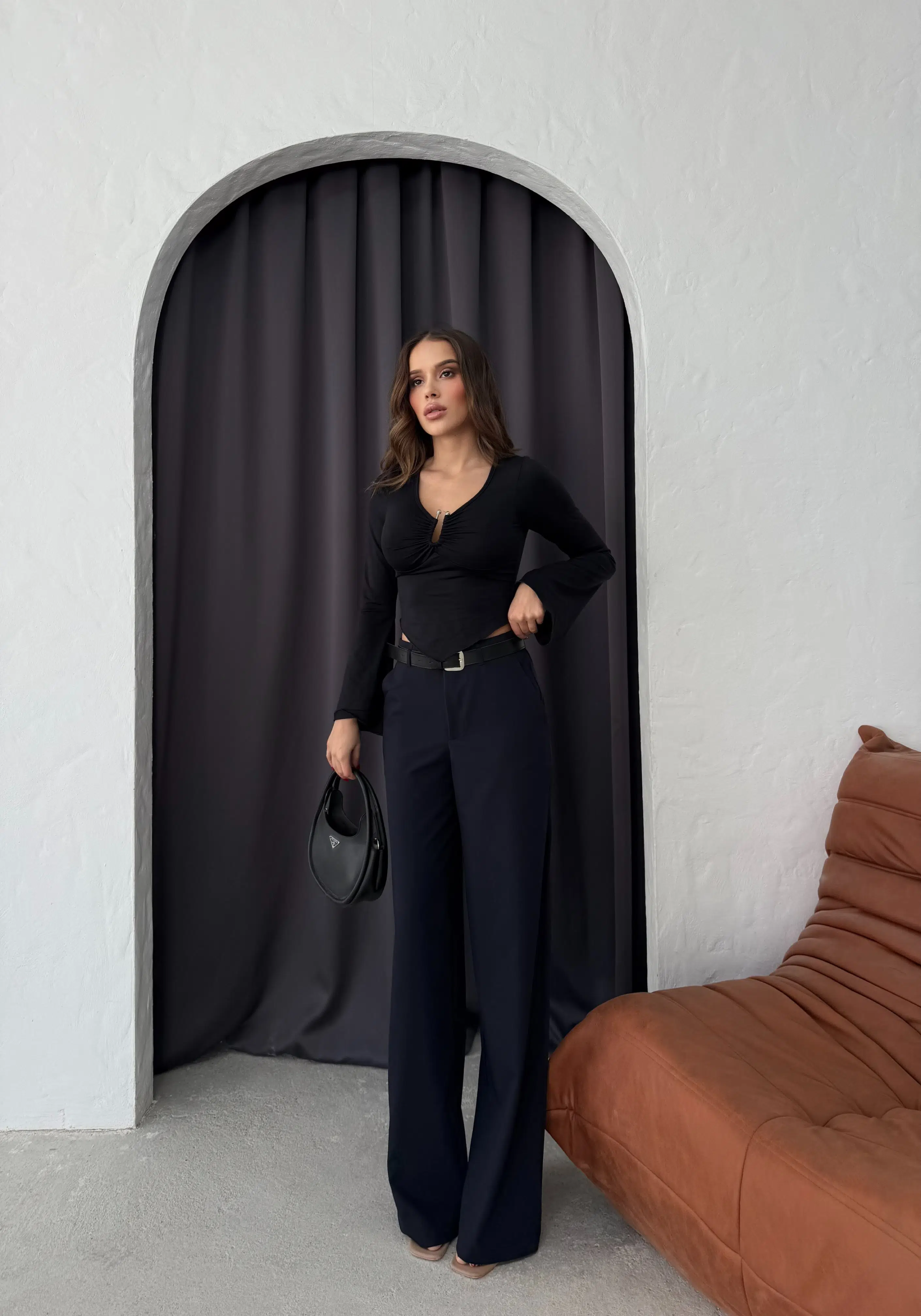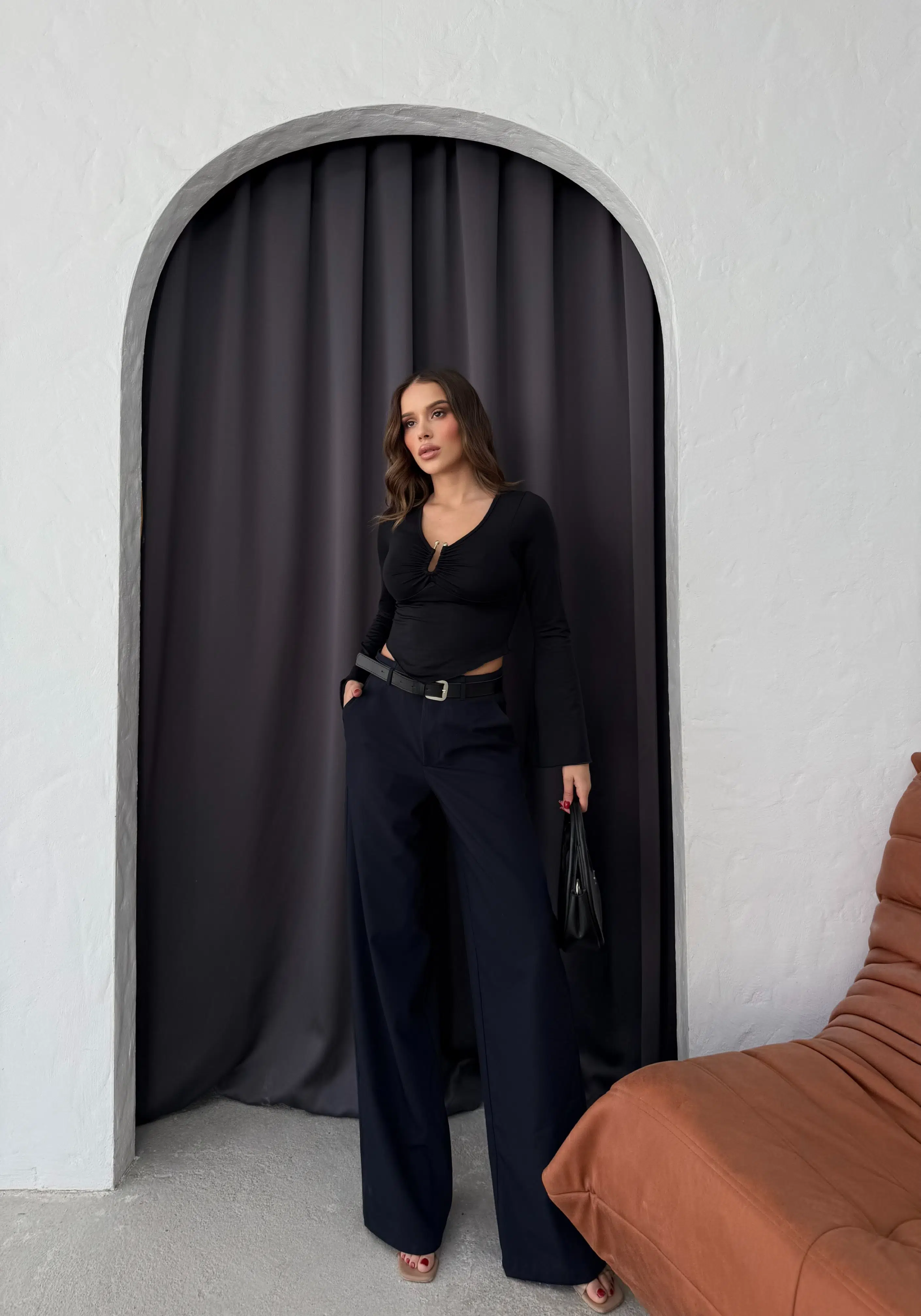 • Yüksek bel tasarımı, vücut proporsiyonunu dengeleyerek daha uzun bir siluet sunar.