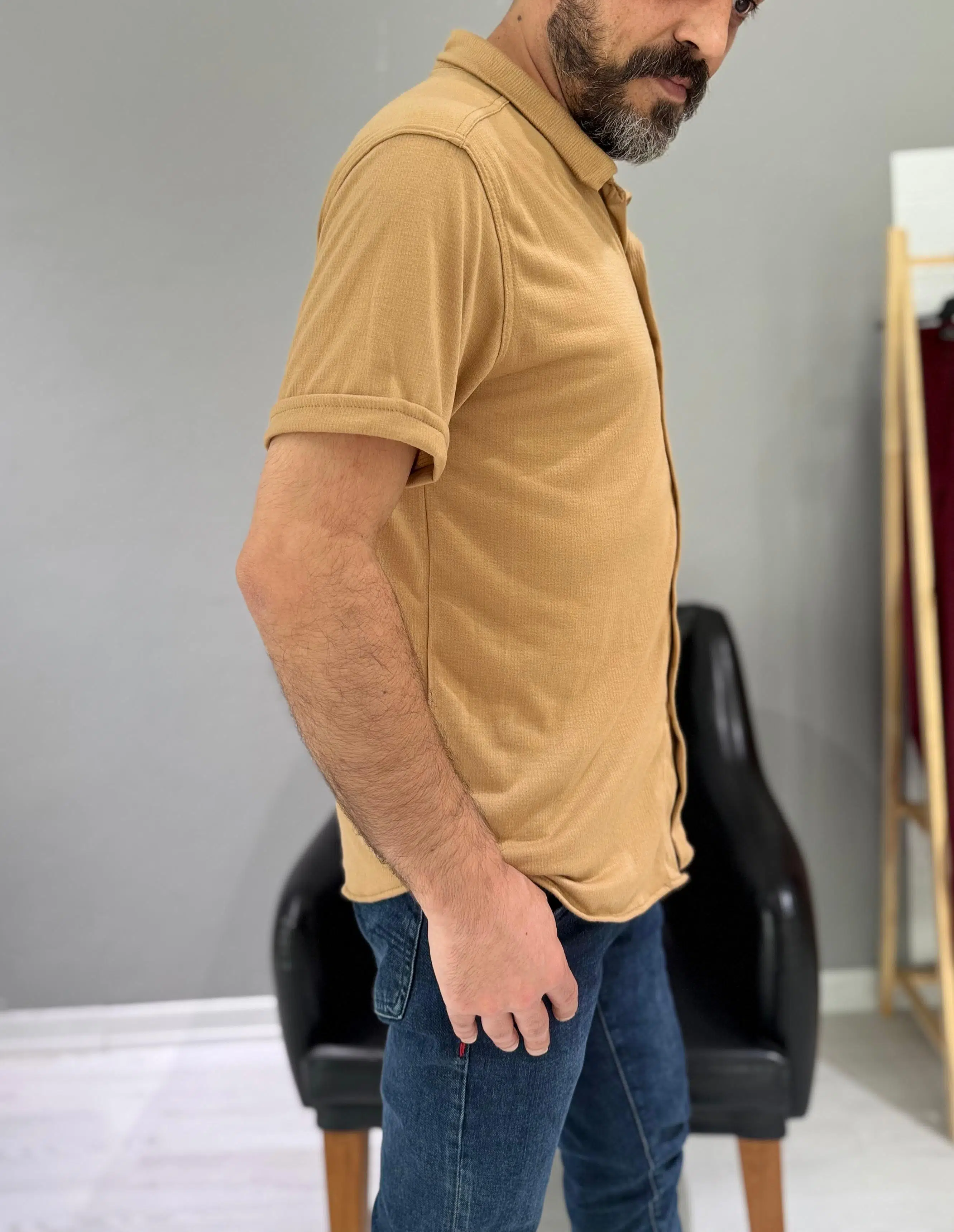 Koyu Bej Basic Erkek Gömlek