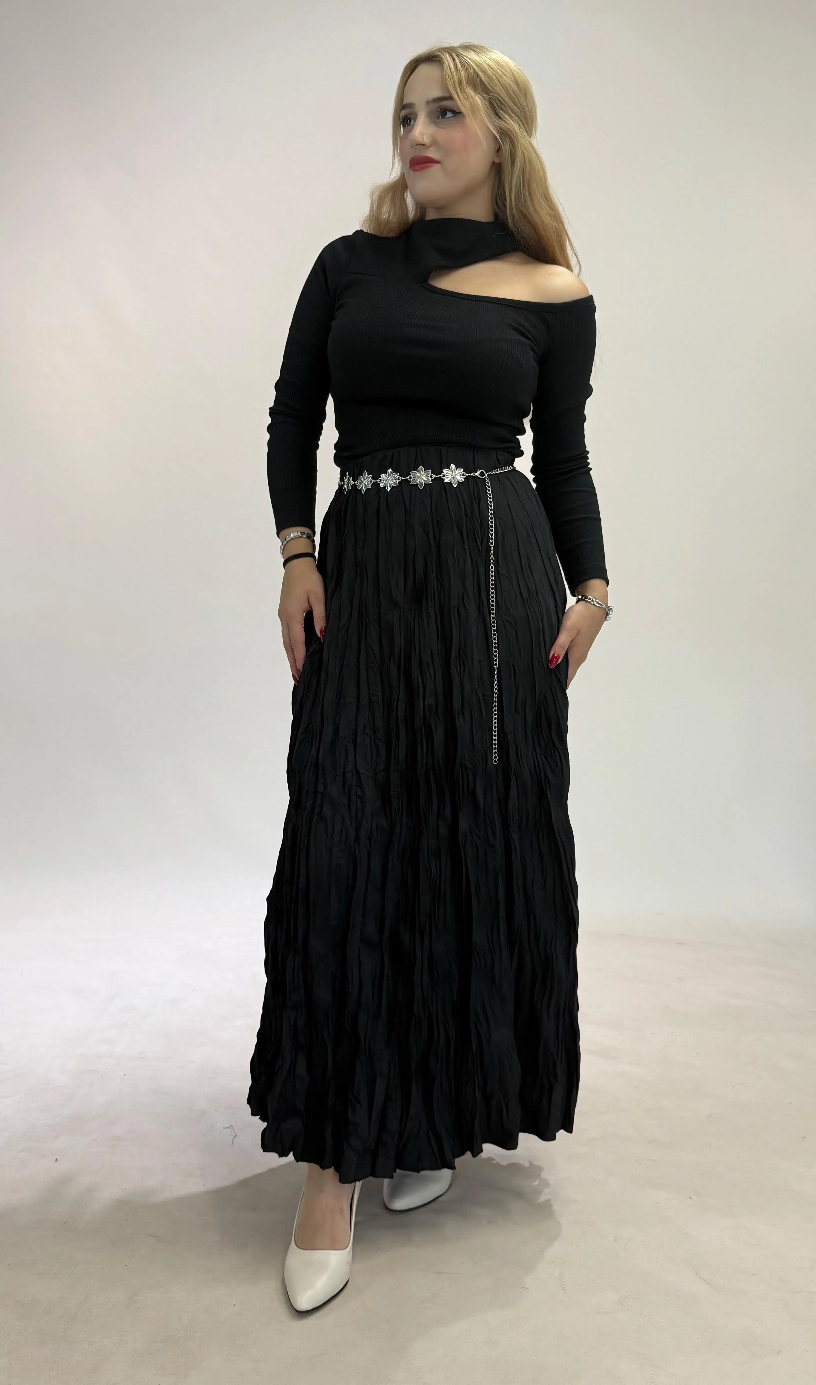 Akıcı kumaşı ve dökümlü yapısıyla her adımda zarafet hissi uyandırır.